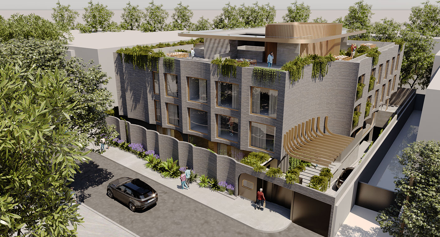Located in a southern neighborhood of Mexico City, an apartment building, to be built on a site where a single-family residence previously stood, brings modern residences to a classic residential neighborhood, famous for its tree-lined avenues. It seamlessly integrates into the context, highlighting the heritage of the area.