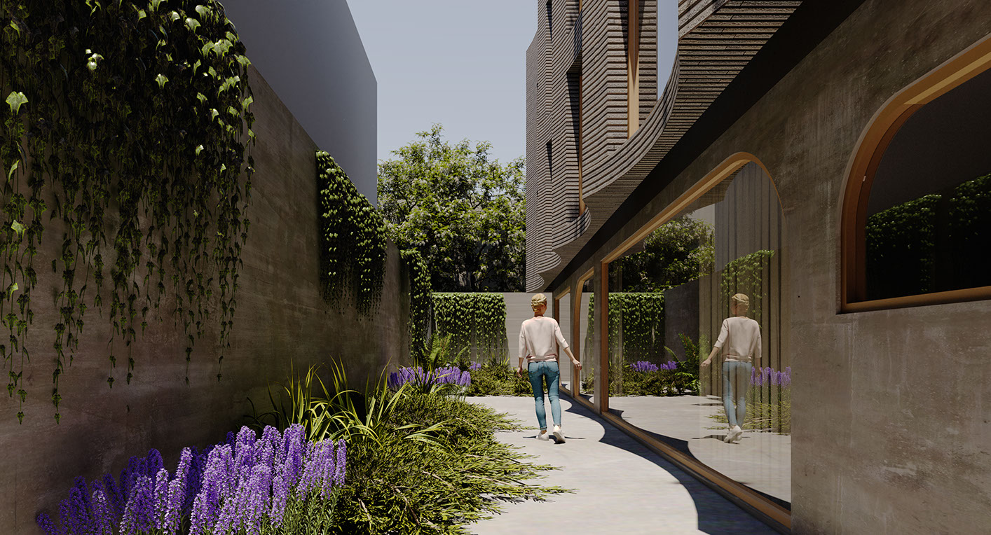 Ubicado en una colonia al sur de la Ciudad de México, un edificio cuyo plan es ser construido en un predio donde antes existía una residencia unifamiliar, trae modernas residencias a una clásico barrio habitacional, famoso por sus avenidas arboladas. Éste se integra al contexto, resaltando la herencia de la zona.