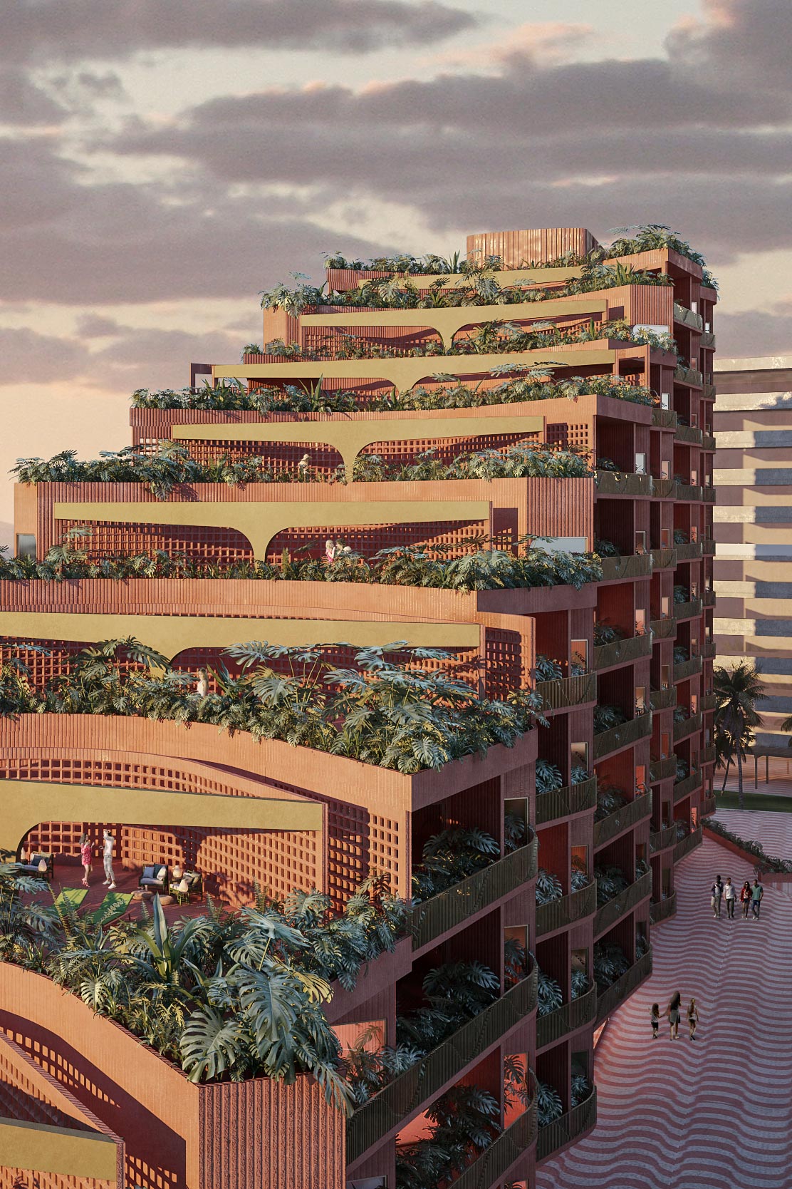 Referencing the name of its street, the garden is planted with sweetgum trees (ocozoles), a native tree similar to the maple that changes with every season, giving the house changing views with the passing of time.