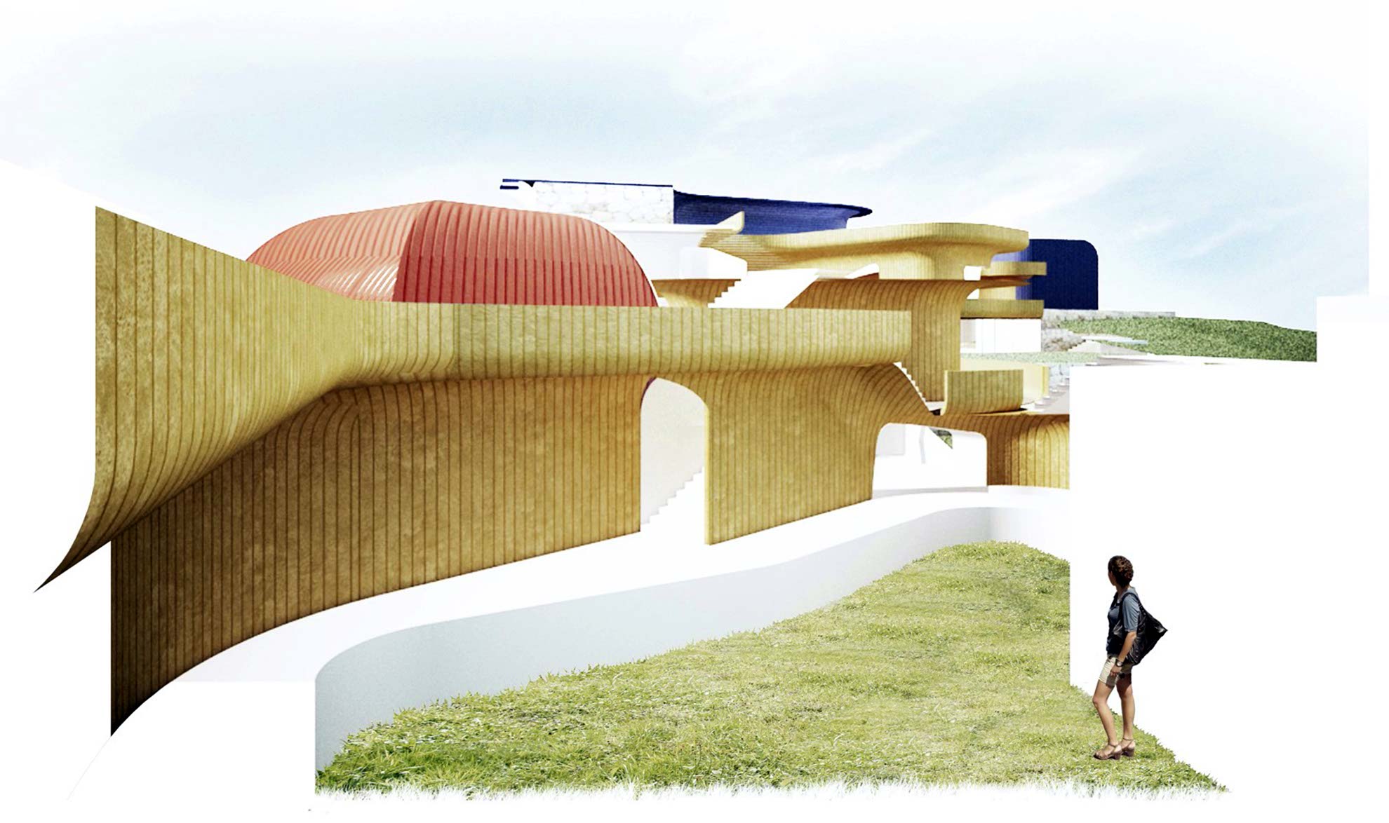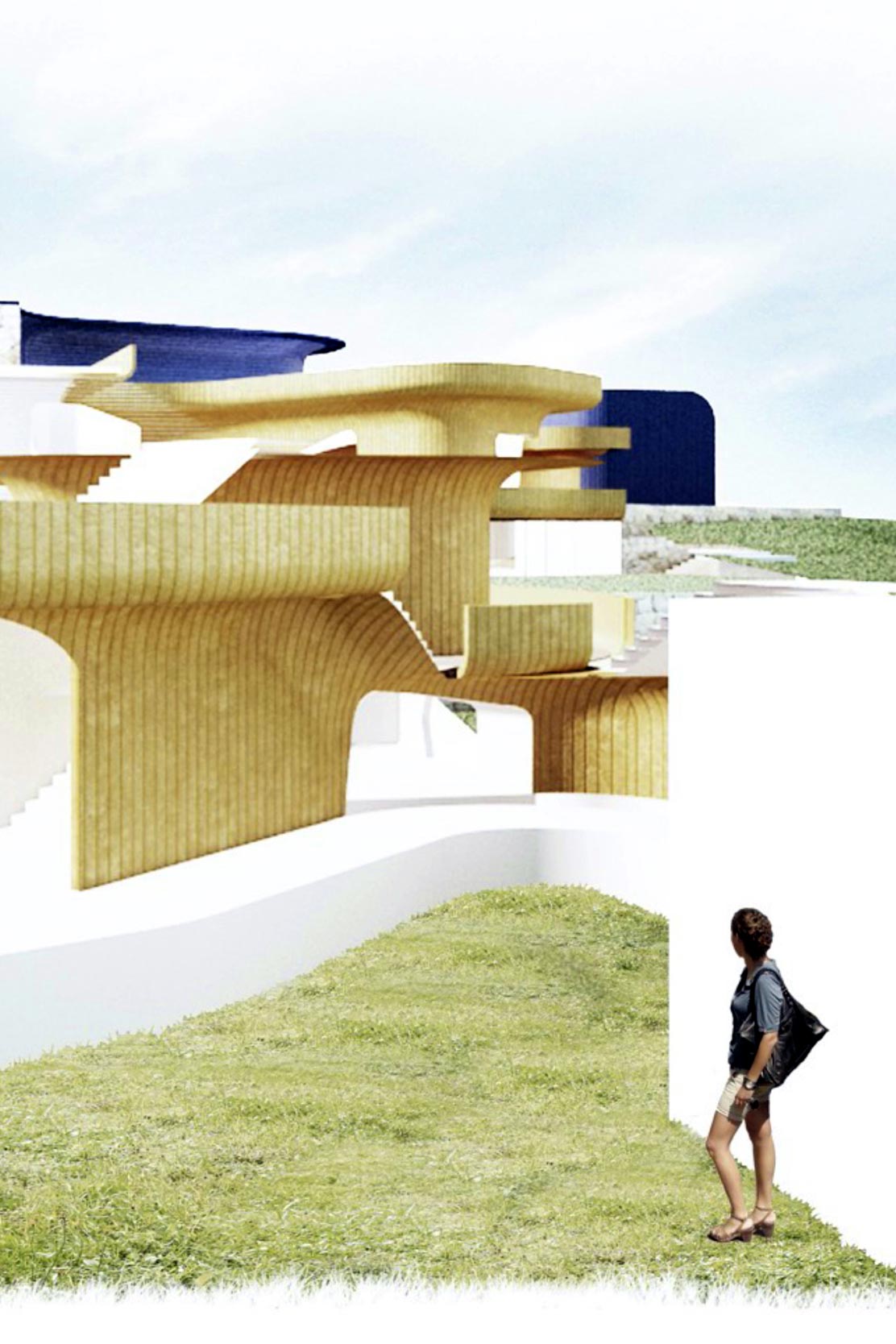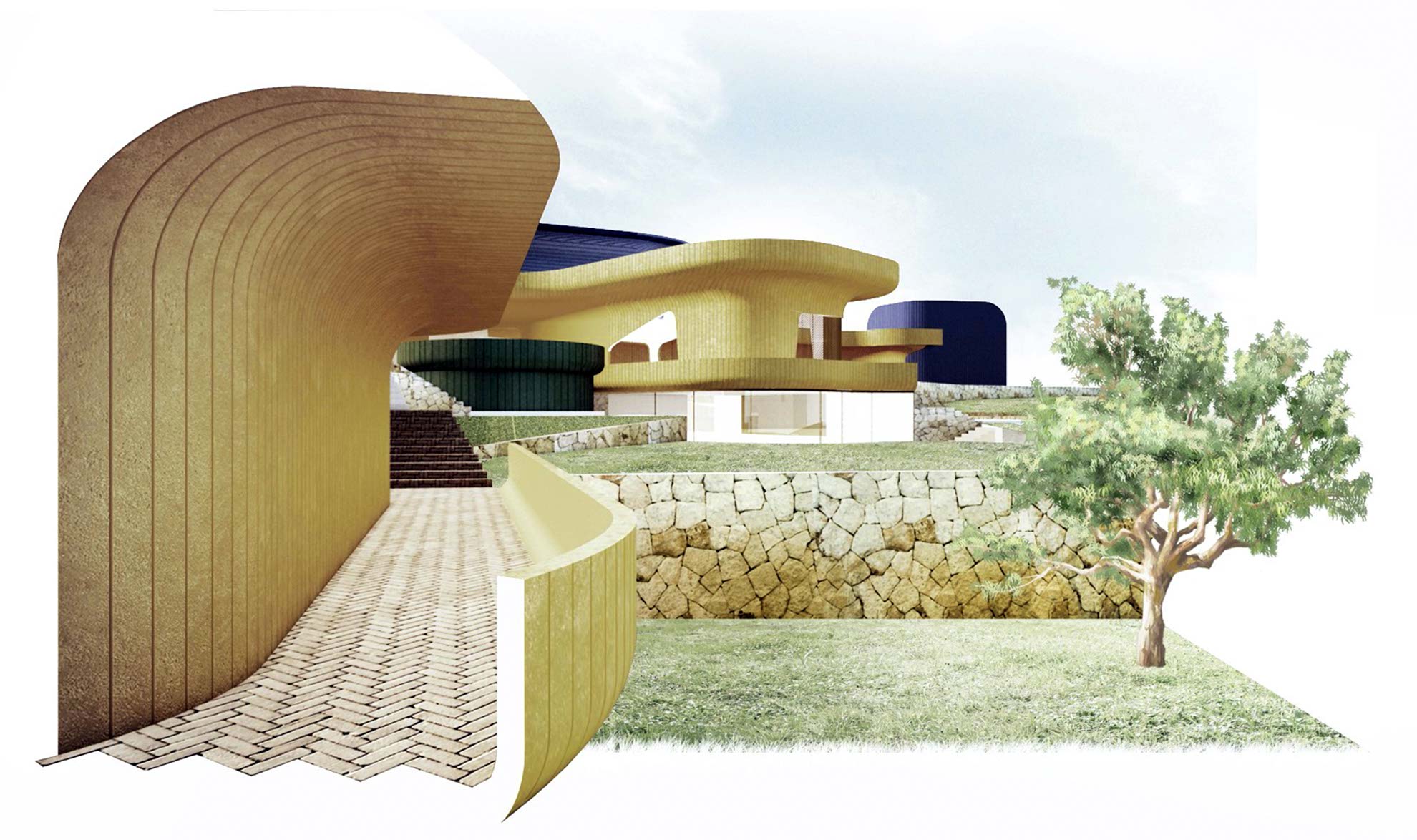 The L shaped footprint of the house occupies the northern and western edges of the plot where the largest slope is located thus allowing for a greater height at the living room, bar and ballroom and winning a third level in a semi basement where the yoga studio, cellar and some of the services are located. The removed soil from the excavation of the foundations and semi basement was used to level the garden that becomes accessible from the main entrance, ground floor and yoga studio.
