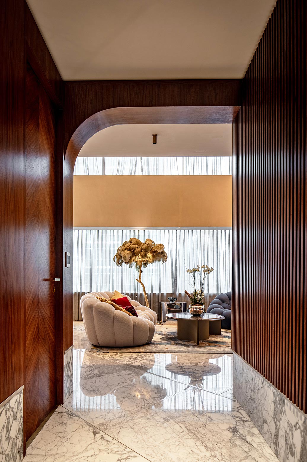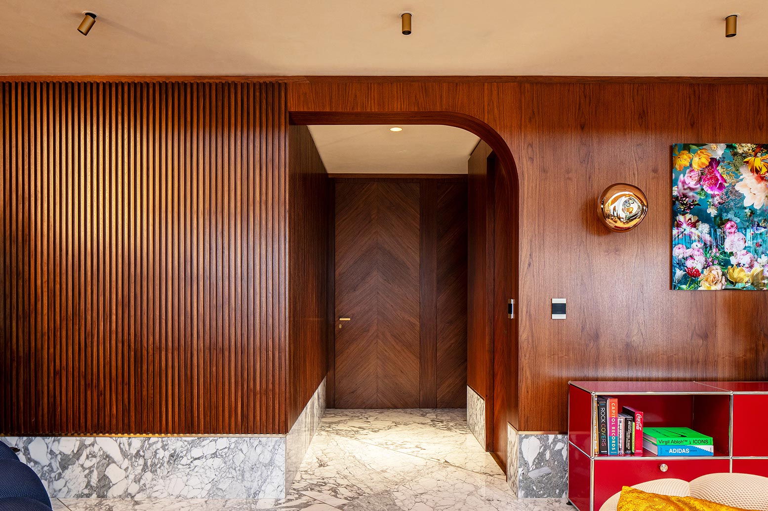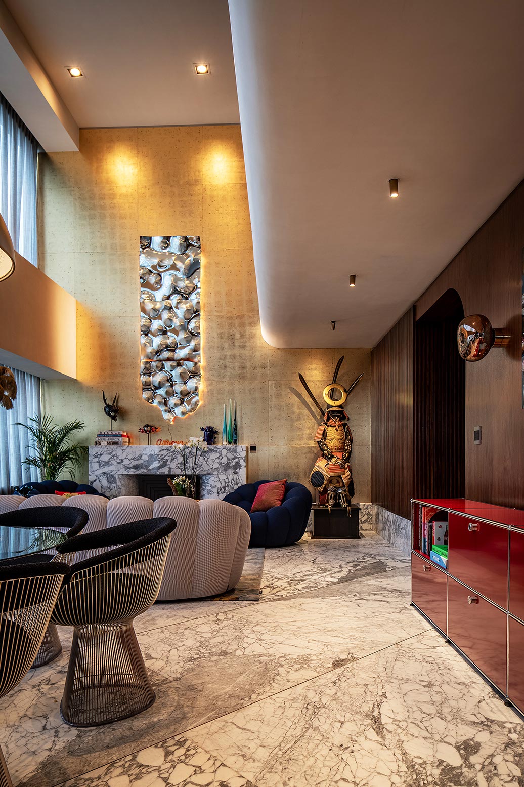 Lo que inicialmente sería un departamento de tendencia minimalista, cuyo uso estaba pensado para las estancias temporales de los dueños, durante sus visitas a la Ciudad de México, resultó en un ecléctico espacio que será habitado de manera permanente por una familia de cinco integrante